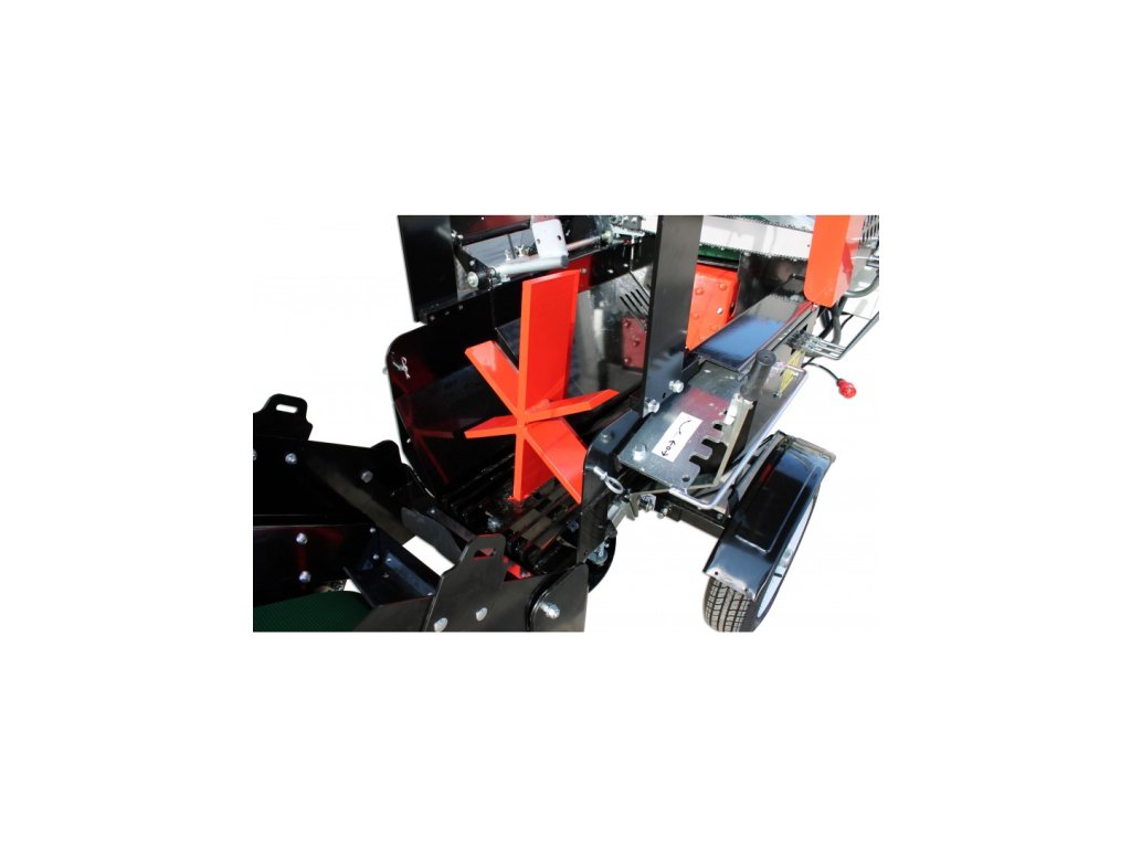 Pila-štípačka je vybavena pásovým podavačem o délce 3,2 m, který dokáže dopravovat opracované dřevo přímo na přívěs, maximální výška podávání dřeva dopravním pásem je 2 m.