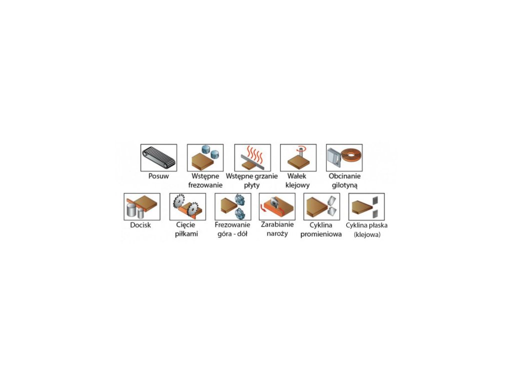 ◦ předehřívání hrany desky. Přední vodítko je vyhříváno. Tento systém umožňuje vysušení příliš mokré hrany desky, na kterou se následně nanese lepidlo.