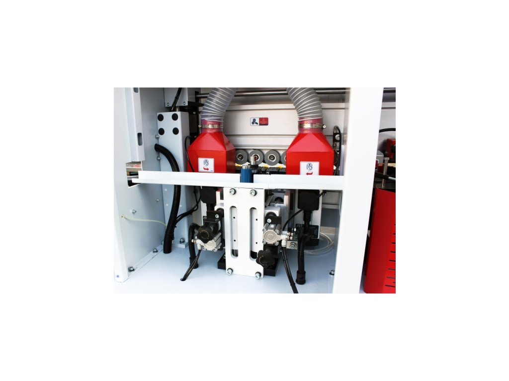 Olepovačka hran s předfrézováním OPTIMAT LOGICA 6, radiální škrabka, plochá (lepicí) škrabka, stříkací systém, leštička