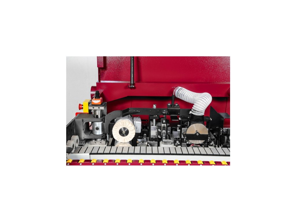 Leštící jednotka: Tato jednotka zanechává vynikající povrchovou úpravu na ABS a PVC hranách a odstraňuje jakékoli zabarvení na hranách, což je obzvláště patrné při práci s tmavým materiálem na hranách.